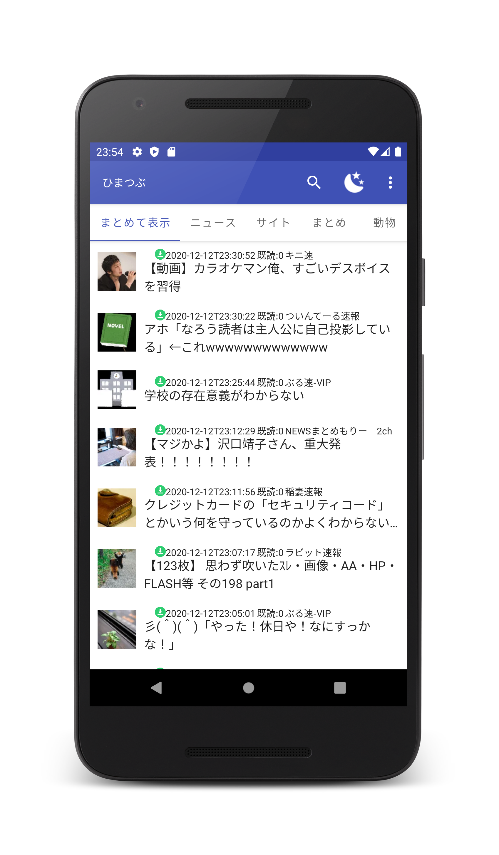 - 暇つぶしに最適な「ニュース」「サイト」「2ch/5chまとめ」「動物」など多彩なチャンネルの中から、読みたいトピックスを自由に選択が可能